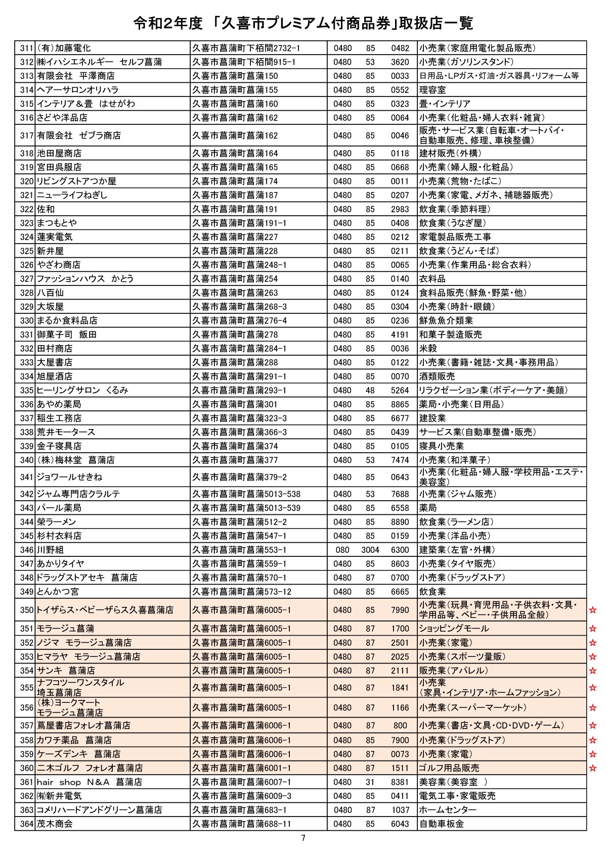 令和2年度 久喜市プレミアム付商品券 取扱店一覧 Of R2久喜市プレミアム付商品券