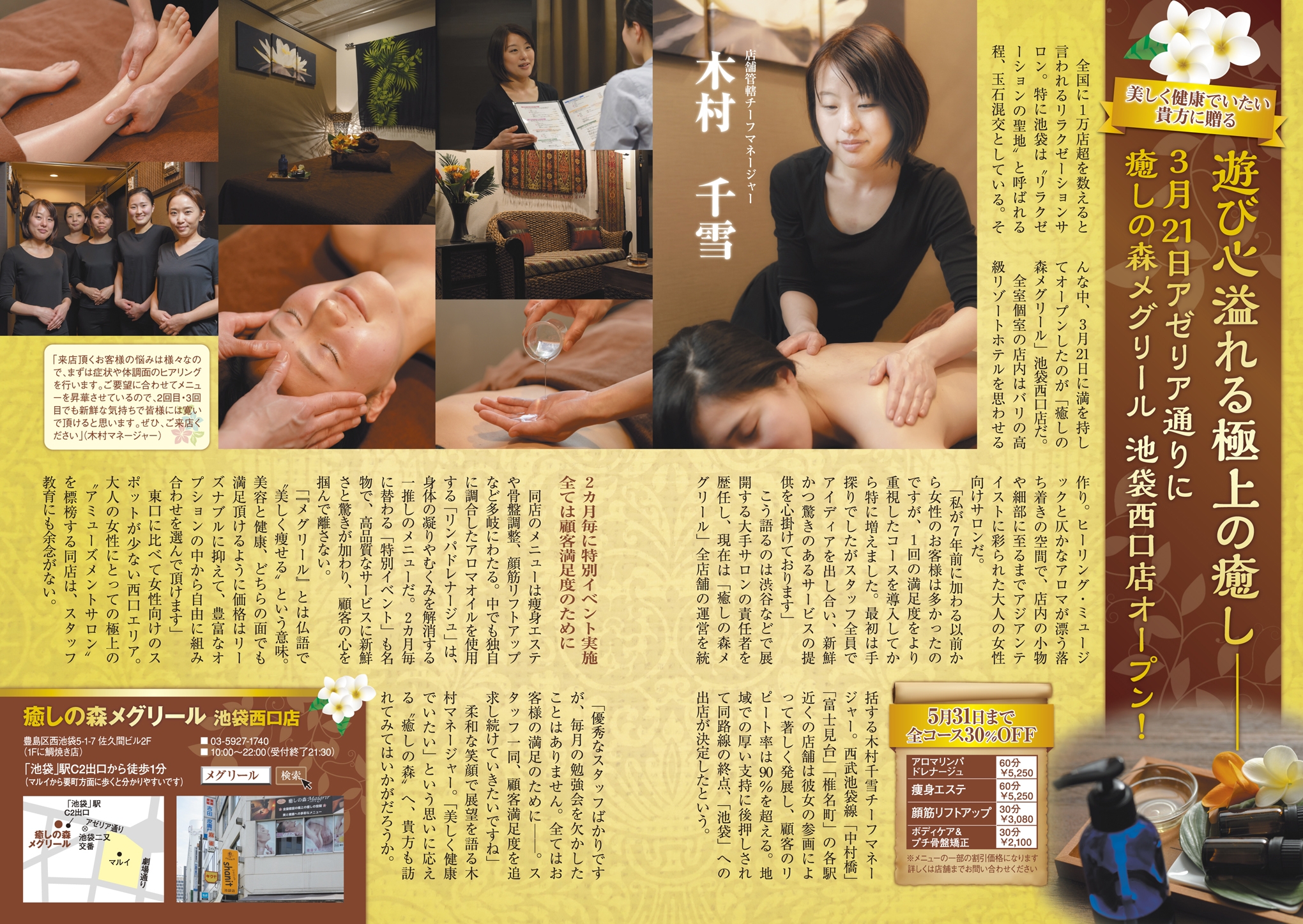 池袋西口店お知らせ 池袋西口アゼリア通りアロマリンパ マッサージはメグリール メグリール